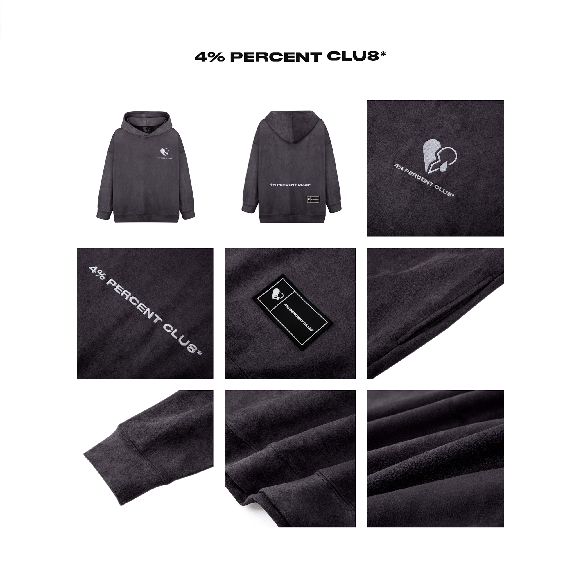 CLASSIC LOGO SUEDE CHAMPAGNE GREY HOODIE / 經典款香檳灰麂皮連帽衛衣